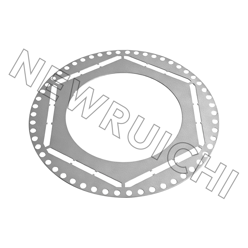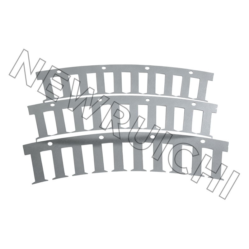 As laminações do estator e do rotor do motor CA são fabricadas com aço silício não orientado de alta qualidade combinado com tecnologia de estampagem de precisão. Cada laminação é processada com controle rigoroso sobre uniformidade de espessura, propriedades magnéticas e precisão dimensional, garantindo desempenho eletromagnético estável durante a operação do motor. As ferramentas e matrizes de estampagem são otimizadas para minimizar rebarbas, deformações e concentração de tensão, ajudando a melhorar a consistência do empilhamento e reduzindo requisitos adicionais de processamento nas etapas subsequentes de fabricação.